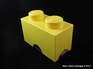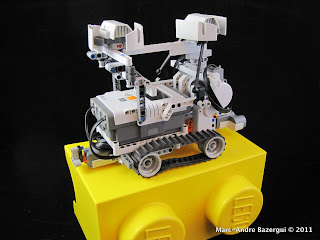 Aprovechando este nuevo formato, Marc-André Bazergui (Bazmarc o Bazmati en Internet) ha creado el NXT 1x2 Brick Bot. Se trata de un robot construido con el inventario del NXT 2.0 que cabe dentro de un ladrillo de almacenaje de 1x2 y lo usa de coraza